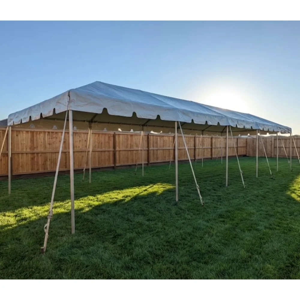 Tents incur a delivery and setup fee, depending on the location. These prices apply to grass setups, where we can secure the tent using stakes. For setups on concrete or asphalt, water barrels are required, which will incur an additional fee. Please note that a water source must be available on-site within at least 50 feet of the tent setup.